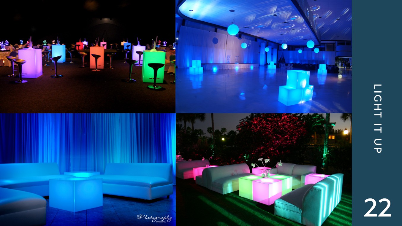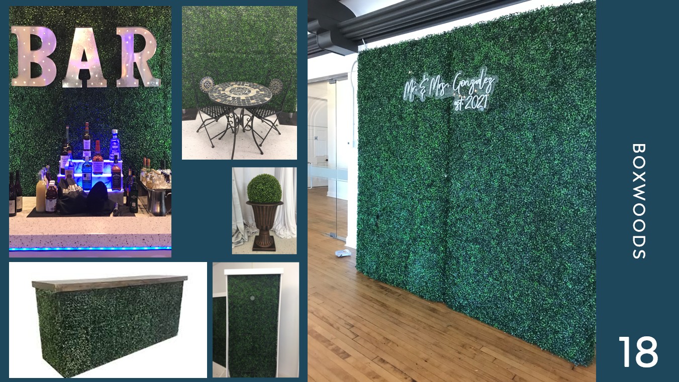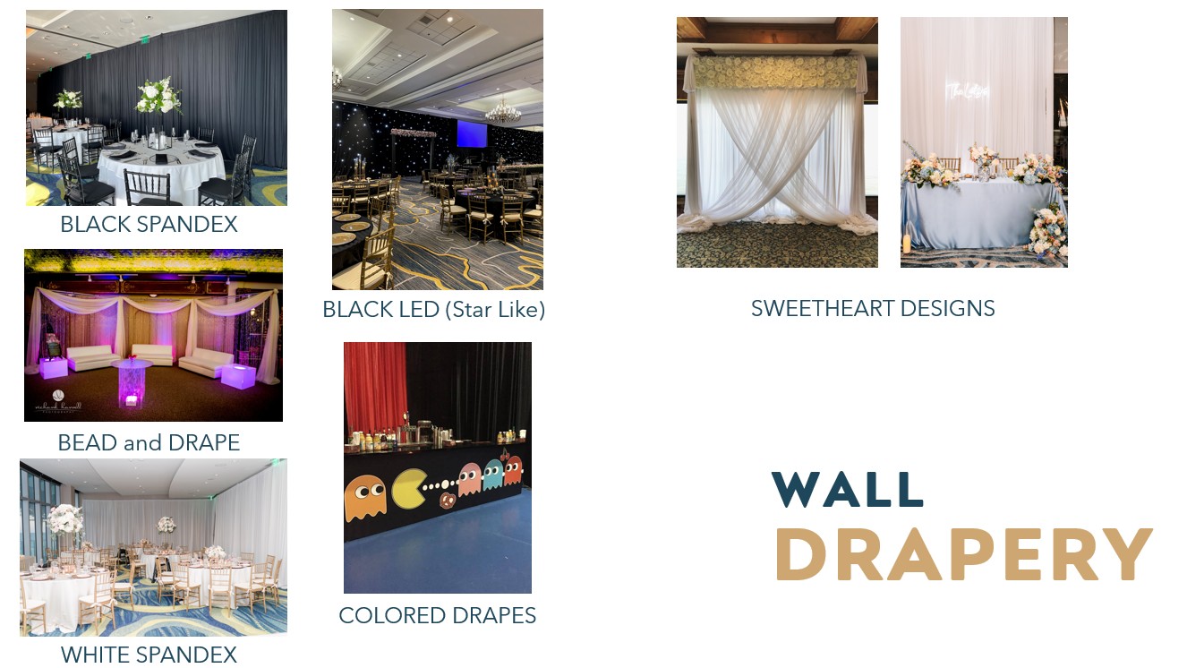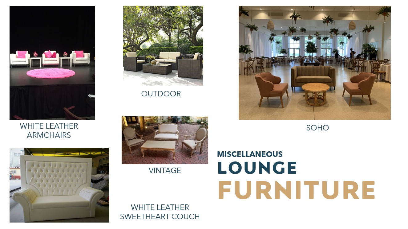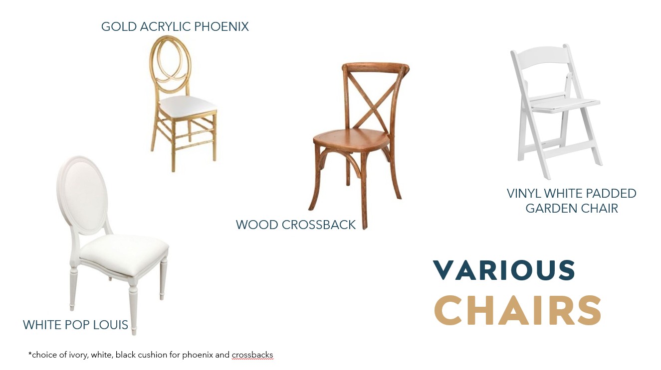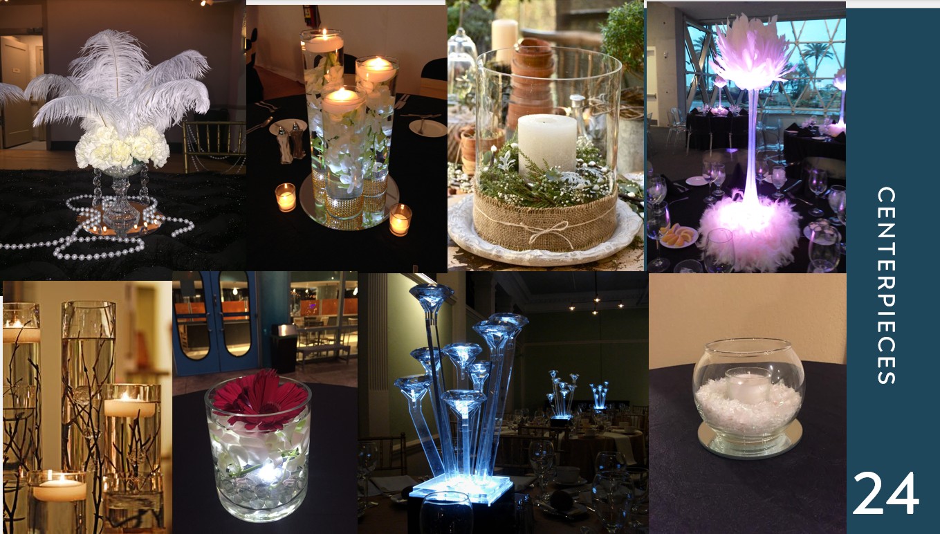 We have a large selection of items available to add that special touch to your event without the hassle of buying them. Contact us for more info!